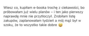 - Listę zakupów – abyś mogła bez stresu zaplanować wszystkie posiłki, nawet w zabiegane dni.